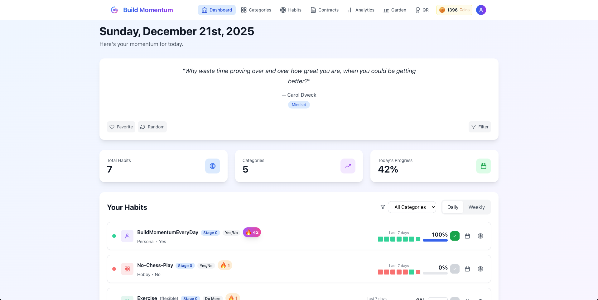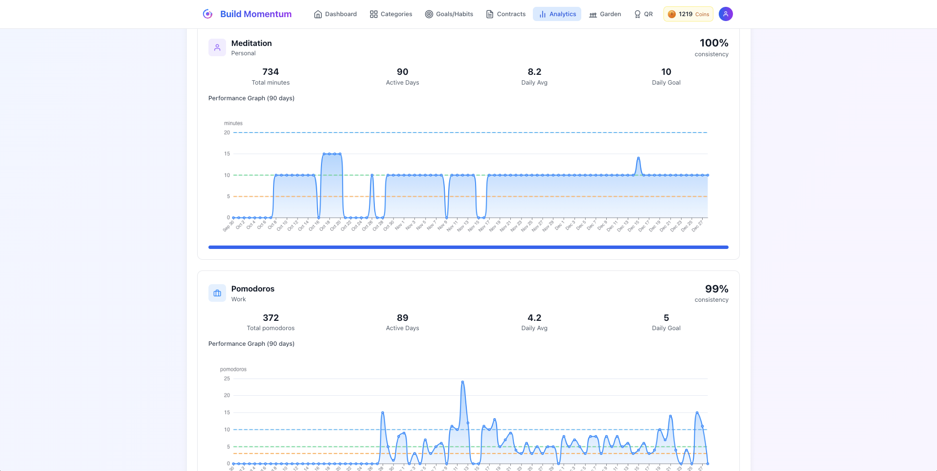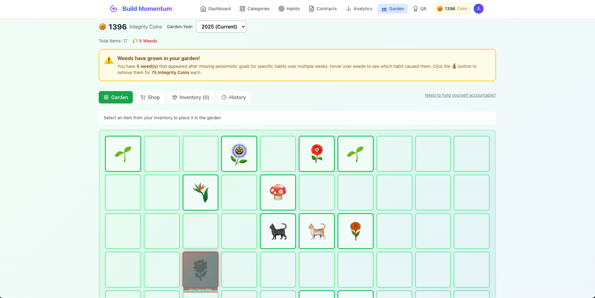 Goal & Habit Tracking Platform With Progressive Stakes—Daily to Quarterly: Beeminder's accountability without financial stress. Habitica's gamification without the busywork. Track with min/target/stretch goals (not all-or-nothing) from daily routines to 12-week objectives. Pause when life happens. Choose your stakes: gentle tracking or hard-mode with weeds. Your garden shows the truth.